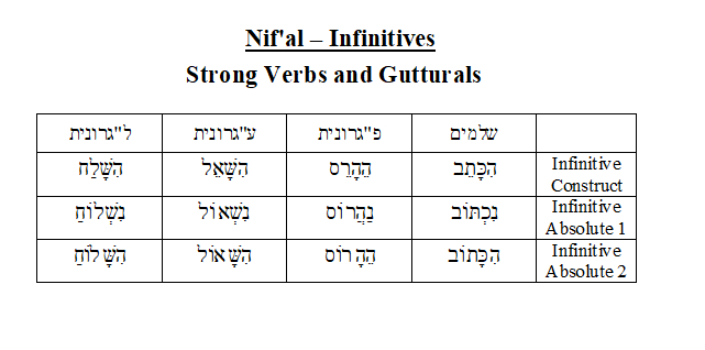 - Infinitive absolute – There are two forms for the infinitive absolute, as seen here.